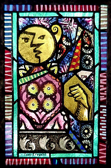 Painted, enamel painted, engraved, sandblasted, Acid etched flashed glass, copper foil construction