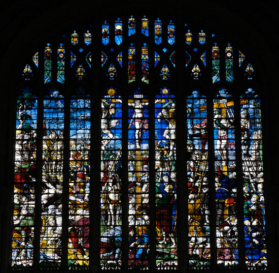I visited King's College Chapel about 17 years ago and I have to say I liked the side chapel glass better than the big bold scenic windows. Just me, as I tend to prefer the small and intimate spaces over the large and overpowering. There is no mention of it in this issue of Vidimus, but if you can find it, look for Hilary Wayment's book on the King's College Side Chapel Glass. On writing this, I tried a search for 'hilary wayment chapel glass' at abebooks.com, and I've seen it on other used book sites. If you just want to see more images of the stained glass from King's College Chapel, the great and the intimate, you can see many images with a Flickr search for 'king's college chapel glass'.