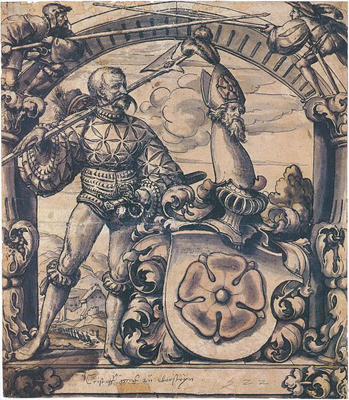 for example - all these stained glass cartoons available on Wikimedia - including this Design for a Stained Glass Window for Christoph von Eberstein, by Hans Holbein the Younger.